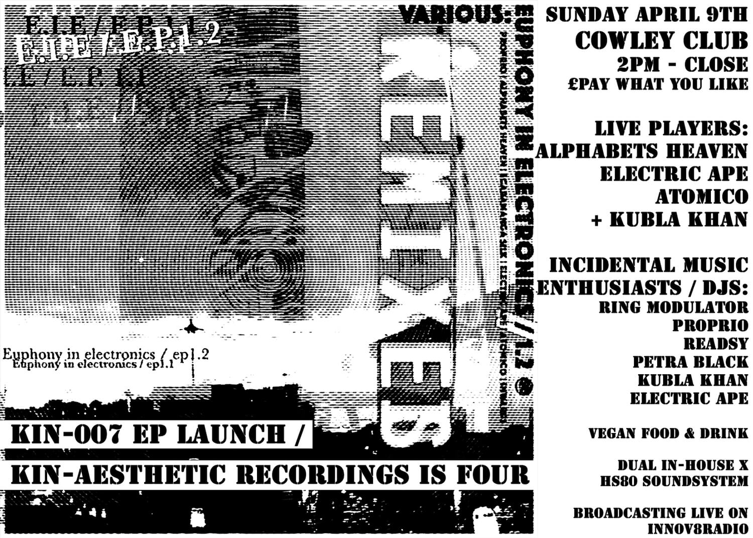 Simultaneously celebrating the upcoming release of Euphony In Electronics / 1.2 (Remixes) & Kin-Aesthetic Recordings fourth birthday, we invite, entice and tempt with an afternoon and eve of live performances and music selection...